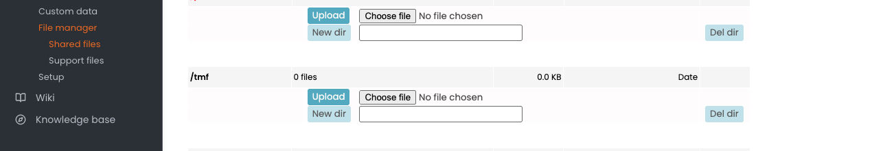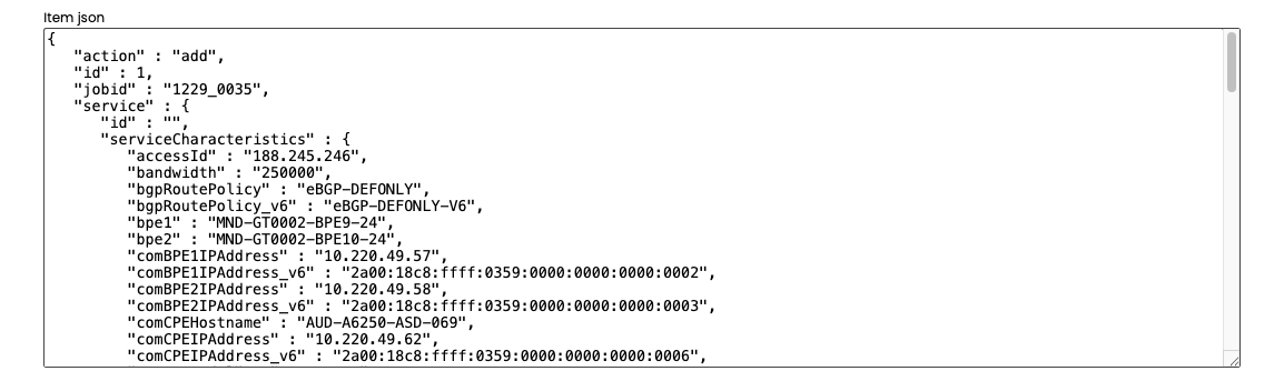 You then can put the contents of the 'Order json' or 'Item json' into the a file and upload it. To upload it, you can use the Admin → File manager → Shared files tool, to upload it into the /tmf directory: